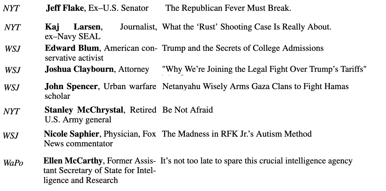 Not surprisingly, Opinion pieces are over 6-times more likely to be AI-written than work by professional journalists. Here are some notable Opinion pieces identified in the article that were fully AI written: