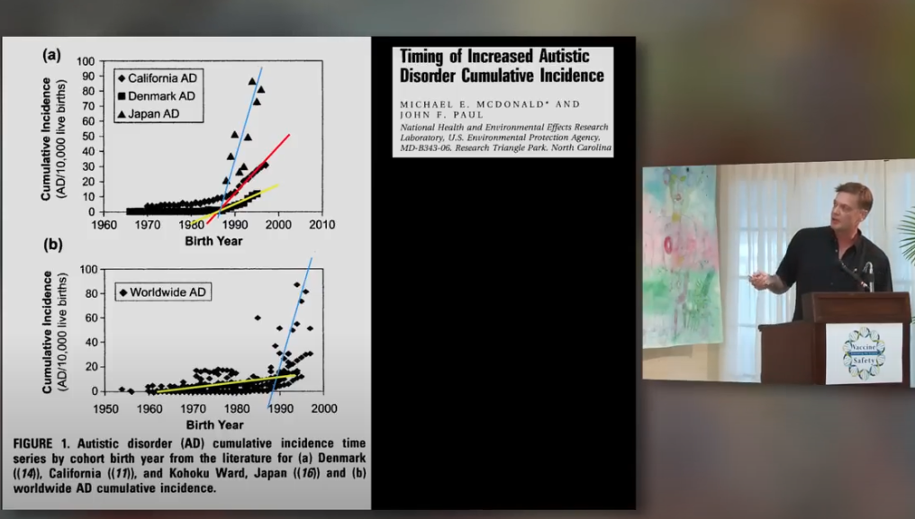 5. (Done) Proclaim that there is an “epidemic of autism” starting at the “red line” year of 1989. (HiB and HBV vaccines, both aluminum-containing, were introduced in the 1980s). Kennedy said "EPA scientists" came up with this "red line" of 1989. If you are wondering what he is talking about, here is Wakefield discussing the paper in the 2011 Jamaica meeting.